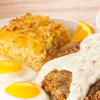 Two Eggs* cooked to order with Grits, Sawmill Gravy and Homemade Buttermilk Biscuits.